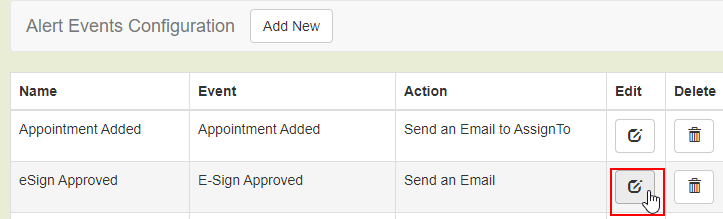 1. This will cause a pop-up window to appear, here you will find any alerts that have already been configured. To edit existing alerts simply click the edit button next to the alert you’d like to change.