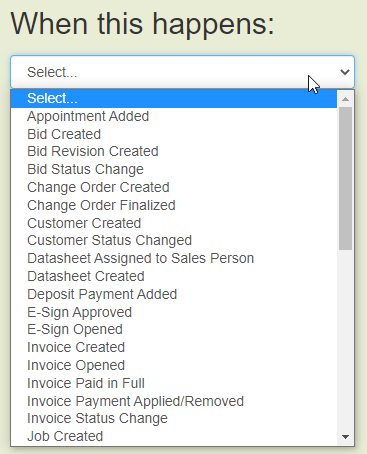 4. Select the event that will cause an alert by choosing an option from the dropdown menu.
