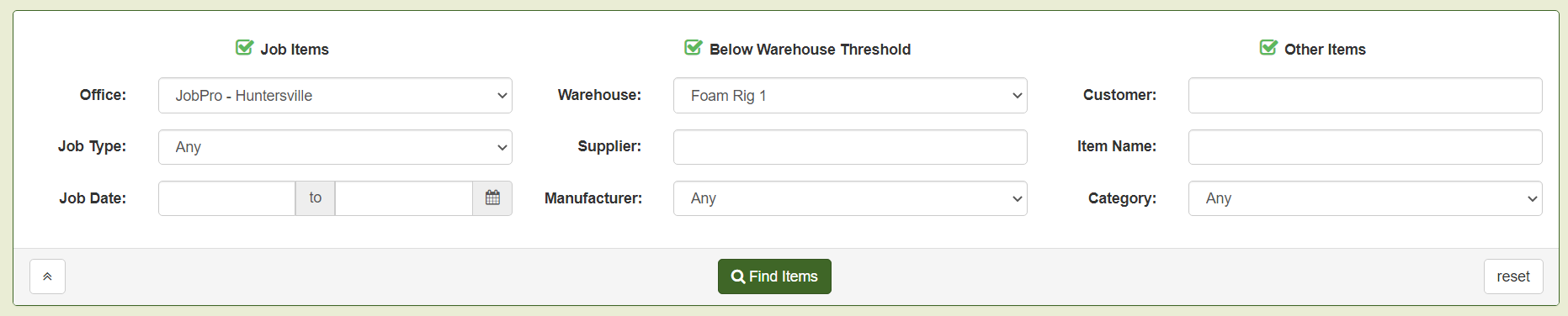 Once on the stock order screen, you can utilize the search filters to select the items you need to add to your stock order. Simply enter the filters you need and click ‘Find Items’