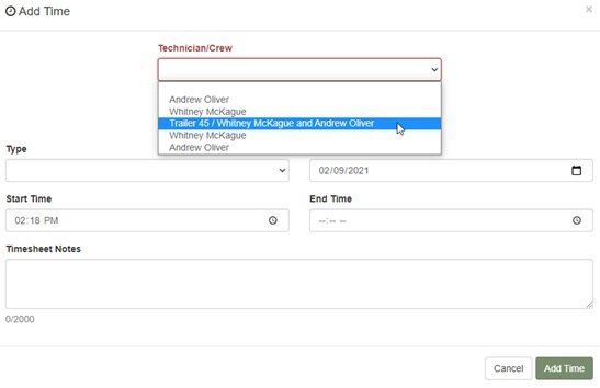 Users can now add time for crews and their resources directly from the tech app. The technician simply needs to click the ‘Add Time’ button located on the time tab. They will then be able to choose from a dropdown menu that includes entire crews or individual resources. Once a crew or resource is chosen, the technician can then fill out the rest of the information and click ‘Add Time’ to finish the entry. When entering time for an entire crew, a pay type will not be available. Each individual resource’s pay will default into their regular pay and can be edited later.