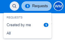 On the Support Portal home page, the upper right corner displays a button labelled “Requests”. Select this to view requests you have submitted. A menu appears where you can select one of the options.