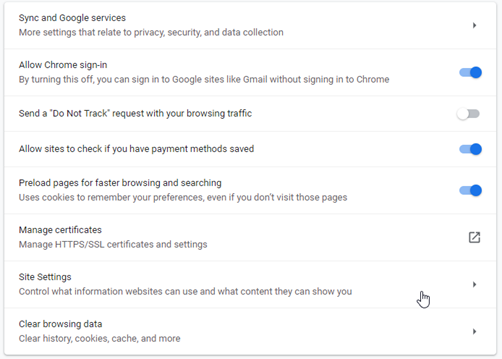 in the “Privacy” section, click the ‘Site Settings’ dropdown
