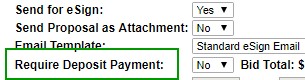 When emailing a proposal from the Reports History tab of the Bid, there is a section that asks the user if they would like to “Require [a] Credit Card Payment”. This verbiage has been updated to ask if the user would like to “Require [a] Deposit Payment” since we support credit card and eCheck deposit payments. You must be integrated with ETS (Electronic Transaction Systems) to utilize this feature.