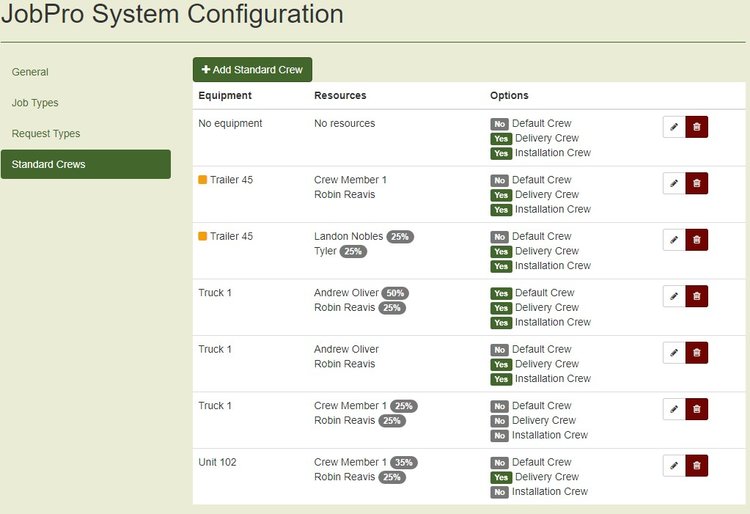Update: The display on the Standard Crews page has been enhanced to be more horizontal than vertical to assist in readability and the ability to navigate between crews.