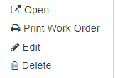 From here you have the options of opening the job, printing the work order, editing, or deleting the job from the scheduler