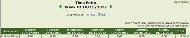 Click the day that you want to enter time on for your resource. This will expand the entire week for the resource and you can add and edit information for multiple days.