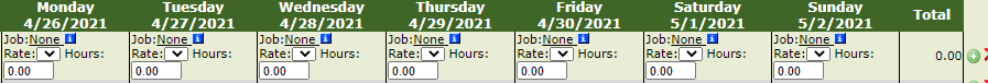 If you need to add an additional job or pay for a resource on any day of the week you are working on, click the green plus sign next to that person’s name.
